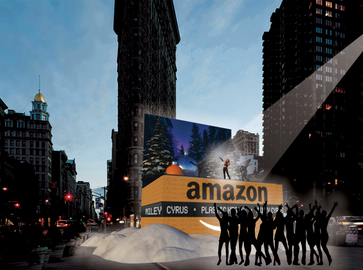 This promotional brand stunt by Amazon brings their November 2020 TV commercial to life in an exciting and immersive way. A giant Amazon Prime box with a countdown clock creates anticipation for a secret live performance. Ambassadors in the area distribute a limited number of VIP passes, granting access to the live event, along with mini Amazon boxes containing clues about the surprise performer. The performance will also be streamed on Amazon Music as part of the Holiday Play Artists event, allowing Prime Video users to enjoy the show from their mobile or home devices. After the performance, the spotlight will move onto the side of the Flatiron building displaying the campaign’s slogan “The Show Must Go On” with Amazon’s logo.
